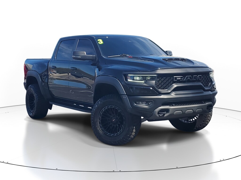 This vehicle comes equipped with Advanced Safety Group (Adaptive Cruise Control w/Stop & Go, Lane Keep Assist, Pedestrian Emergency Braking, and Tailgate Ajar Warning Lamp), Quick Order Package 29Y, TRX Level 2 Equipment Group (#2 Seat Foam Cushion, 2-Door Passive Entry, Front Door Locks, 4 Way Front Headrests, Accent Color Door Handles, Blind Spot & Cross Path Detection, Bucket Seats, Center Console Parts Module, Digital Rearview Mirror, Driver Seat Memory, Driver/Passenger Wrapped Assist Handles, Exterior Mirrors w/Memory, Front Door Accent Lighting, Front Seat Back Map Pockets, Full Length Premium Upgraded Floor Console, Heads-Up Display, Heated Front Seats, Heated Second Row Seats, Heated Steering Wheel, IP LED Ambient Light Pipe, Leather Trimmed Bucket Seats, Leather/Suede Flat-Bottom Steering Wheel, LED CHMSL Lamp, Luxury Front Door Trim Panel, MOPAR Bright Pedal Kit, ParkSense Front/Rear Park Assist w/Stop, Pick-Up Box Lighting, Power 4-Way Driver Lumbar Adjust, Power 4-Way Passenger Lumbar Adjust, Power 8-Way Driver & Passenger Seats, Power Adjustable Pedals w/Memory, Premium Wrapped IP Bezel, Radio/Driver Seat/Mirrors/Pedals Memory, Rain Sensitive Windshield Wipers, Rear 60/40 Folding Seat, Rear 60/40 Folding Split Recline Seat, Rear Door Accent Lighting, Rear Underseat Compartment Storage, Rear Window Defroster, Remote Tailgate Release, Sun Visors w/Illuminated Vanity Mirrors, Surround View Camera System, Trailer Brake Control, Universal Garage Door Opener, Ventilated Front Seats, Ventilated Rear Seats, and Wireless Charging Pad), 10 Speakers, 3.55 Rear Axle Ratio, 4-Wheel Disc Brakes, ABS brakes, Adaptive suspension, Air Conditioning, Alloy wheels, AM/FM radio: SiriusXM with 360L, Apple CarPlay/Android Auto, Auto High-beam Headlights, Auto-dimming door mirrors, Auto-dimming Rear-View mirror, Automatic temperature control, Black Exterior Mirrors, Brake assist, Cloth/Vinyl Bucket Seats, Compass, Delay-off headlights, Dome Dual LED Reading Lamp, Driver door bin, Dual front impact airbags, Dual front side impact airbags, Dual-Pane Panoramic Sunroof, Electronic Stability Control, Exterior Mirrors Courtesy Lamps, Exterior Mirrors w/Heating Element, Exterior Mirrors w/Supplemental Signals, Front anti-roll bar, Front Bucket Seats, Front Center Armrest w/Storage, Front dual zone A/C, Front fog lights, Front reading lights, Front wheel independent suspension, Fully automatic headlights, harman/kardon 19 Speaker Premium Sound (DISC), Heated door mirrors, Illuminated entry, Leather Shift Knob, Leather steering wheel, Low tire pressure warning, Navigation System, Occupant sensing airbag, Outside temperature display, Overhead airbag, Overhead console, Panic alarm, ParkView Rear Back-Up Camera, Passenger door bin, Passenger vanity mirror, Power door mirrors, Power driver seat, Power steering, Power windows, Power-Folding Mirrors, Radio data system, Radio: Uconnect 5 Nav w/12.0" Display, Rear seat center armrest, Rear step bumper, Remote keyless entry, Security system, Speed control, Split folding rear seat, Sport steering wheel, Steering wheel mounted audio controls, Tachometer, Telescoping steering wheel, Tilt steering wheel, Traction control, Trip computer, Turn signal indicator mirrors, Variably intermittent wipers, Voltmeter, and Wheels: 18" x 9" Black Paint/Polish Aluminum .