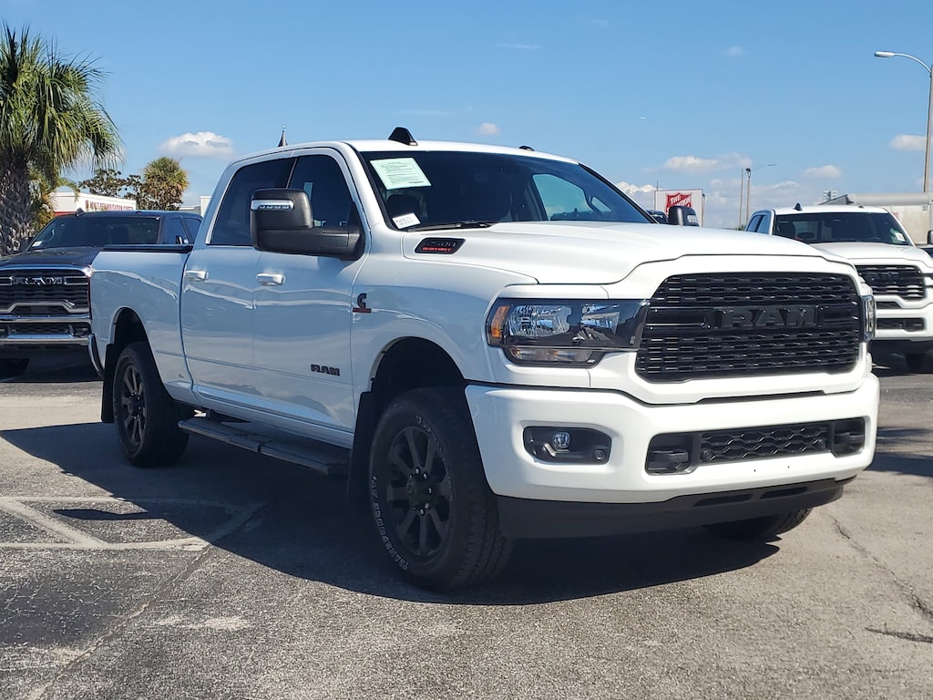 THIS VEHCILE INCLUDES THE FOLLOWING OPTIONS AND FEATURES: Bed Utility Group (LED Bed Lighting, MOPAR Deployable Bed Step, and MOPAR Spray In Bedliner), Heavy Duty Snow Plow Prep Group (220 Amp Alternator), Level 1 Equipment Group (2 Way Rear Headrest Seat, 2nd Row In Floor Storage Bins, 4 Way Front Headrests, 40/20/40 Split Bench Seat, 4G LTE Wi-Fi Hot Spot, 8.4" Touchscreen Display, Apple CarPlay, Auto Power-Folding Mirrors, Big Horn IP Badge, Black Exterior Mirrors, Bluetooth Handsfree Phone & Audio, Center Hub, Connectivity - US/Canada, Dual Glove Boxes, Exterior Mirrors Courtesy Lamps, Exterior Mirrors w/Heating Element, Exterior Mirrors w/Supplemental Signals, Foam Bottle Insert (Door Trim Panel), Footwell Courtesy Lamp, For Details, Visit DriveUconnect.com, For More Info, Call 800-643-2112, Forward & Reverse Utility Lights, Front Armrest w/Cupholders, Front Center Seat Cushion Storage, Front Fog Lamps, Front Seat Back Map Pockets, Global Telematics Box Module (TBM), Glove Box Lamp, Google Android Auto, GPS Antenna Input, Integrated Center Stack Radio, Integrated Voice Command w/Bluetooth, Leather Wrapped Steering Wheel, Locking Lower Glove Box, Manual Adjust 4-Way Front Passenger Seat, Mirror Running Lights, Power 2-Way Driver Lumbar Adjust, Power Adjust 8-Way Driver Seat, Power Adjust Mirrors, Power Adjustable Convex Aux Mirrors, Power Heated Fold Telescope Mirrors, Power Telescoping Mirrors, Rear 60/40 Folding Seat, Rear Dome w/On/Off Switch Lamp, Remote USB Port - Charge Only, Selectable Tire Fill Alert, SiriusXM Radio Service, SiriusXM Satellite Radio, Steering Wheel Mounted Audio Controls, Storage Tray, and Wheels: 18" x 8.0" Polished Aluminum), Night Edition (Black Exterior Truck Badging, Black Headlamp Bezels, Black Interior Accents, Black Ram Head Tailgate Badge, Black Tail Lamp Bezels, Black Wheel Center Hub, Body Color Door Handles, Body Color Grille Surround, Gloss Black Nostrils/MIC Black Grille, Painted Front Bumper, Painted Rear Bumper, ParkSense Front/Rear Park Assist System, and Wheels: 20" x 8.0" Black Painted Aluminum), Protection Group (Tow Hooks), Quick Order Package 2HZ Big Horn, 3.73 Axle Ratio, 4-Wheel Disc Brakes, 6 Speakers, 9 Alpine Speakers w/Subwoofer, ABS brakes, Active Noise Control System, Air Conditioning, Air Conditioning ATC w/Dual Zone Control, Alexa Built-In, All R1 High Radios, All Radio Equipped Vehicles, Anti-Spin Differential Rear Axle, Auto Level Rear Air Suspension, Brake assist, Bumpers: chrome, Center Stack Storage Drawer, Cloth 40/20/40 Bench Seat, Compass, Connected Travel & Traffic Services, Delay-off headlights, Disassociated Touchscreen Display, Driver door bin, Dual front impact airbags, Dual front side impact airbags, Electronic Stability Control, Electronically Controlled Throttle, Emergency communication system: SiriusXM Guardian, Front anti-roll bar, Front Center Armrest w/Storage, Front reading lights, Fully automatic headlights, GPS Navigation, HD Radio, Heated door mirrors, Illuminated entry, Low tire pressure warning, Manual Adjust 4-Way Driver Seat, MOPAR Front & Rear Rubber Floor Mats, Occupant sensing airbag, Off-Road Information Pages, Outside temperature display, Overhead airbag, Overhead console, Painted Flat Cab-Length Side Steps, Panic alarm, ParkView Rear Back-Up Camera, Passenger door bin, Passenger vanity mirror, Power door mirrors, Power steering, Power windows, Premium Cloth 40/20/40 Bench Seat (DISC), Radio data system, Radio: Uconnect 3 w/5" Display, Radio: Uconnect 5 Nav w/8.4" Display, Radio: Uconnect 5 W w/8.4" Display, Rear anti-roll bar, Rear Folding Seat, Rear seat center armrest, Rear step bumper, Remote keyless entry, Remote Start System, SiriusXM w/360L, Speed control, Tachometer, Tilt steering wheel, Tip Start, Traction control, Trailer Tow Pages, Trip computer, Turn signal indicator mirrors, Variably intermittent wipers, Voltmet