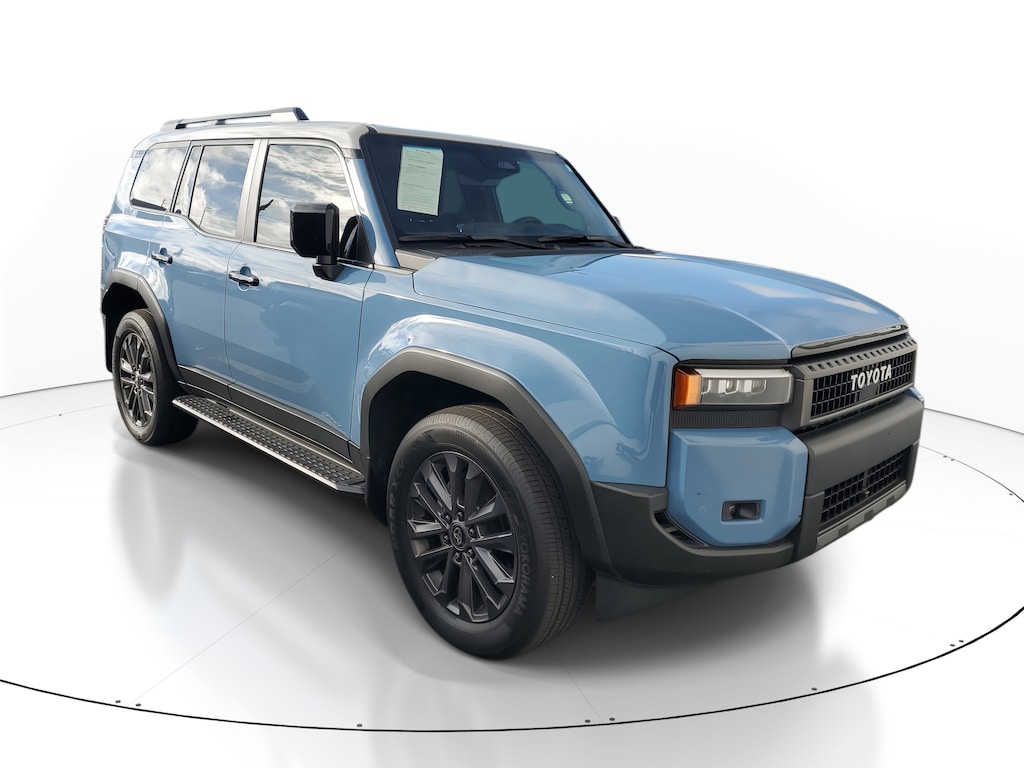 2025 Toyota Land Cruiser 2.4L 4-Cylinder Blue 2.4L 4-Cylinder. This vehicle also comes equipped with: 2.4L 4-Cylinder, 10 Speakers, 4-Wheel Disc Brakes, ABS brakes, Air Conditioning, Alloy wheels, AM/FM radio: SiriusXM, Apple CarPlay/Android Auto, Auto High-beam Headlights, Auto-dimming Rear-View mirror, Automatic temperature control, Brake assist, Compass, Delay-off headlights, Driver door bin, Driver vanity mirror, Dual front impact airbags, Dual front side impact airbags, Electronic Stability Control, Emergency communication system: Safety Connect (up to 10-year trial subscription), Exterior Parking Camera Rear, Front anti-roll bar, Front Bucket Seats, Front Center Armrest, Front dual zone A/C, Front fog lights, Front reading lights, Front wheel independent suspension, Fully automatic headlights, Garage door transmitter: HomeLink, Heated & Ventilated Front Seats, Heated door mirrors, Heated front seats, Heated steering wheel, Illuminated entry, Knee airbag, Leather Shift Knob, Leather steering wheel, Low tire pressure warning, Navigation system: Drive Connect Cloud Navigation (1-year trial subscription), Occupant sensing airbag, Outside temperature display, Overhead airbag, Overhead console, Panic alarm, Passenger door bin, Passenger vanity mirror, Power door mirrors, Power driver seat, Power Liftgate, Power steering, Power windows, Radio data system, Radio: Toyota Audio Multimedia System, Rain sensing wipers, Rear air conditioning, Rear anti-roll bar, Rear reading lights, Rear seat center armrest, Rear window defroster, Rear window wiper, Remote keyless entry, Security system, SofTex Synthetic Leather Seat Trim, Speed control, Speed-sensing steering, Split folding rear seat, Spoiler, Steering wheel mounted audio controls, Telescoping steering wheel, Tilt steering wheel, Traction control, Trip computer, Turn signal indicator mirrors, Variably intermittent wipers, Ventilated front seats, and Wheels: 18 x 7.5J Matte Gray Alloy. 4WD 8-Speed Automatic Recent Arrival!
